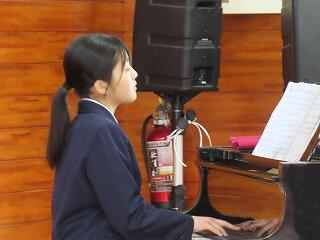 収録前 少し緊張していたようですが、音楽科の先生の指導を受けながらしっかり練習しました。