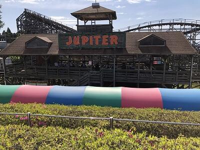 有名な木製ジェットコースター「ジュピター」の前で記念写真。