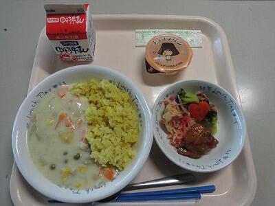クリームかけピラフ 照り焼きチキン 添え野菜