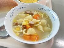 コッペパン トマトミートオムレツ 添え野菜 ミネストローネ 牛乳