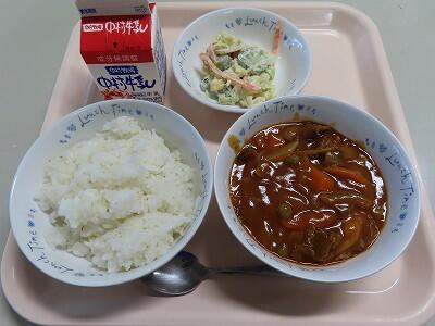 ハヤシライス かみかみレンコンサラダ 牛乳