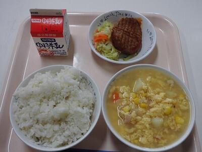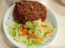 麦ごはん 煮込みハンバーグ 野菜のレモン和え