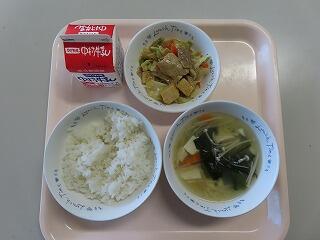 麦ごはん 回鍋肉 中華スープ 牛乳