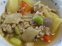 麦ごはん 新じゃがいものそぼろ煮 ごぼうサラダ 牛乳