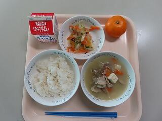 麦ごはん 即席漬け 豚汁 みかん 牛乳