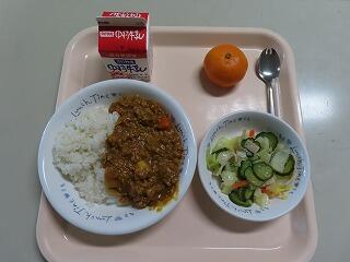 キーマカレーライス フレンチサラダ みかん 牛乳