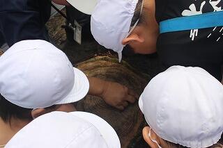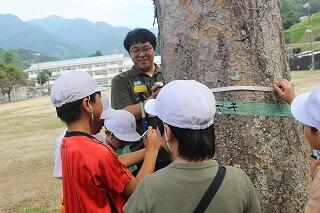 いつも何気なく過ごしている運動場の木について詳しく教えてもらった子どもたちはうれしそうでした。