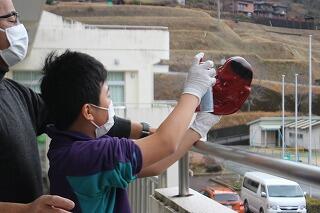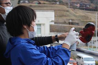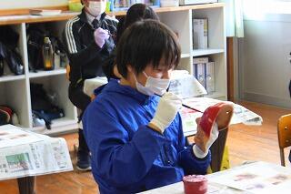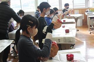 神楽面は形が凸凹していたり、細かい部分も多かったため、普段の授業以上に高い集中力が必要でした。子どもたちからは「大変だった」といった声が聞こえてきました。