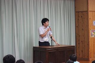 始業式の後、小学校と中学校に分かれて集会を行いました。