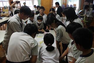 講義の後、2グループに分かれ、土石流や崖崩れの仕組み、ダムの役割などを学びました。