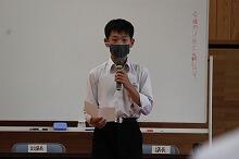 式では各部のキャプテンが抱負を述べ、生徒会長と校長がそれぞれ激励しました。また選手を代表して、軟式野球部の生徒が選手宣誓を行いました。