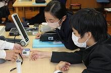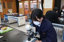 中学3年生が理科の授業でタマネギの根の先端を使い、細胞分裂のようすを観察していました。塩酸で処理をして手順どおりプレパラートを作成しましたが、目的の染色体はなかなか発見できず、苦労していました。一人一台ずつ顕微鏡を使い、一生懸命観察している子どもたちの姿がとても良かったです。