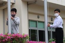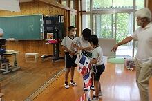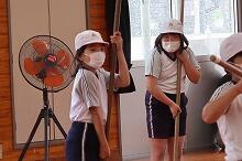 小中合同運動会が終わり、1時間目は、「修学旅行合同学習会」に行った中学2年生を除いた全校児童・生徒で片付けを行い、玉入れの球や万国旗を拭いたり、体育倉庫を片付けたりしました。また、中学生は6時間目も片付けをしました。今日の上野は朝は曇っていましたが、次第に日差しが強くなり、外に干していたはちまきなどもよく乾きました。