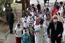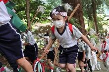5月5日(木)、下野八幡大神社の春祭りが行われました。例年であれば小・中学生が棒術や長刀踊りを披露しますが、今年は、列に加わるだけでした。上野小・中学校の子どもたちが健康で安全に過ごせることを願いながら玉串を捧げました。