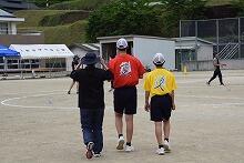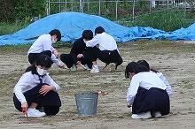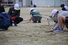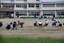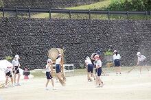 4時間目は中学生でした。練習を早めに切り上げ、トラックをトンボでならしたり、ほうきで掃いたりしていました。