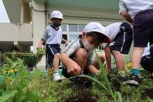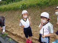 5月20日(金曜日)、小学1・2年生が学校の近くにある畑にイモの苗を植えました。子どもたちは楽しそうに苗を植えていました。秋の収穫がとても楽しみです。