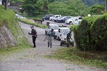5月6日(金)、小中合同で「不審者対応の避難訓練」を行いました。今回は、「発見した先生や近くにいた先生たちで不審者を子どもたちがいないところへ追い込む訓練」と「子どもたちの安全を確保し、避難する訓練」とを行いました。不審者役は上野駐在所のおまわりさんです。訓練の後、職員にはさすまたの使い方や実際に対応するときに気をつけることなどを教えていただきました。