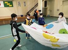 上野小・中学校では、5月29日(日曜日)に小中合同運動会を行います。新年度が始まり一月程度ですが、団技やリレーの練習をしています。5月2日(月曜日)は朝からよく晴れていました。運動場では小学3・4年生が団技の練習をしています。今日が初めての団技の練習だったようで、ルールと動きの確認をしていました。