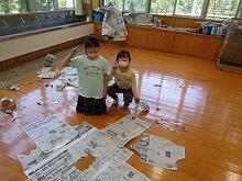 小学1年生の図工の時間、画用紙などの紙を折って、自分の考えた建物を作っていました。作ったものをうまく建てるために、紙の折り曲げ方を工夫していました。
