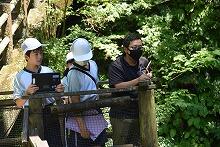 今朝の上野の空は雲が広がっていましたが、時間が経つにつれて青空が見えるようになり、暑くなってきました。屋外では、小学4年生がタブレットをもち、運動場や花壇でいろいろな写真を撮っていました。自分たちが植えたヘチマが育っているのを見て、喜んでいました。
