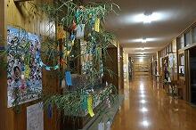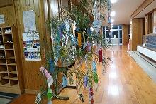 今日は7月7日、七夕です。玄関前の掲示板には小学4年生が作った掲示物が掲示してあります。星の形の色紙に、子どもたちの願い事が書いてあります。また、小学生の教室の前には七夕飾りが飾ってあります。今夜は天の川や星が見えるといいですね。