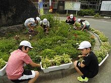 今日の清掃時間は「玄武タイム」として、全校児童生徒で植栽活動と除草作業を行いました。雲が広がり、暑さが和らいだ15分間の活動でしたが、みんなで作業し、自分たちの学校の花壇やプランターがきれいになりました。また、いただいた花の苗がまだたくさん残っているので、この時間を利用してプランターに植えました。植えたのはインパチェンスとマリーゴールド、そしてサルビアです。