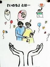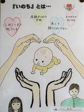 中学1年生の教室には、「いのちの教育」として実施した授業を振り返り、描いた作品が掲示してあります。「命の大切さ」について、命のつながりや家族への感謝の気持ちなどを考える時間になったようです。