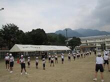 今朝の上野は曇り空でした。1・2時間目は、運動会に向けて小中合同で行う「全体練習」の1回目でした。今日の内容は開会式及び閉会式の練習とエール交換の流れの確認でした。開会式の練習では、ラジオ体操も行いました。曇り空のおかげで昨日のような照りつけるような暑さはありませんでしたが、給水・休憩の時間を多く取りながらの練習でした。