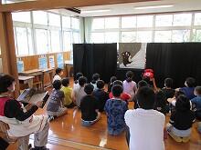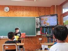読み聞かせグループ「お話の森」の皆様が、小学生に読み聞かせをしてくださり、1~4年生にはそれぞれの教室で絵本を読んでくださいました。5・6年生には合同でお話シアターをしてくださいました。
