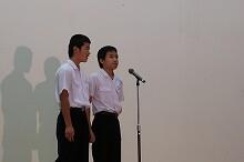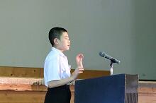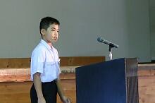 午前中は、合唱・合奏発表、英語暗唱、英語弁論、日本語弁論と各学年の発表でした。1年生は1学期に行った「職場体験学習」、2年生は17日(日)からの修学旅行について「訪問地紹介」としてそれぞれ発表しました。