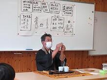 高千穂高等学校ジアスアカデミーの皆さん(生徒2名職員2名)に来ていただき「世界農業遺産高千穂郷・椎葉山地域を知る」と題して講話をしていただきました。