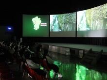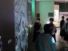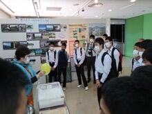 阿蘇火山博物館での見学のようすです。館内では大きな画面で阿蘇山の歴史や地震のことを勉強しました。途中には高千穂峡の写真も出てきました。グループごとの見学では、ガイドの方がパネルやビデオをていねいに説明してくださいました。