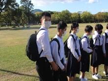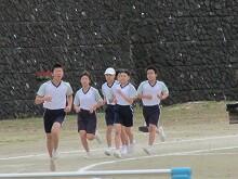 修学旅行を終えて帰ってきたら、高千穂は寒く感じました、今日の体育の授業は持久走でした。暑くなく、走りやすいコンディションでした(1年生と3年生の一部です)。