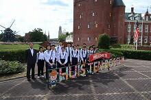 平和学習を終えた修学旅行団は、高速道路を使い、佐世保市にある「ハウステンボス」に向かい、2日目の午後を過ごしました。入場後すぐに集合写真を撮った後は、昼食を含め自由行動でした。