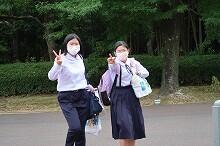 本丸では学級で集合写真を撮りました。天守閣に登ることができました。先日までは中止になっていて、4月に行った中学3年生の集合旅行では入ることはできなかったそうです。中は階段が整備され、天守閣まで登ることができました。資料や写真などが展示してあり、一つ一つのパネルや資料をゆっくり見たいほどでした。子どもたちは天守閣を見た後、短い時間でしたが買い物もしていました。