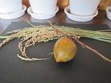 今日の中学校は1年生と3年生だけでした。2年生は日曜日から2泊3日の修学旅行に行っていたため今日は休みです。校長室には昨日5年生が稲刈りをした田んぼの稲と近くの方からいただいた「黒柿」が飾ってありました。