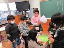 1年生の教室では、カードを使って授業をしていました。道徳の時間に人間関係について勉強していたようです。