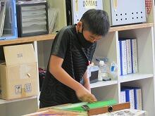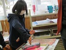小学5年生が図工の時間に版画に取り組んでいました。今回の版画は「一版多色刷り版画」で、一枚の版木を刷って彫ることを繰り返しながら色を重ねていき完成させます。彫刻刀を上手に使い、次に使う色を考えながら制作を進めていました。出来上がりが楽しみです。