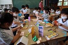 小学1年生の図工の時間、画用紙などの紙を折って、自分の考えた建物を作っていました。作ったものをうまく建てるために、紙の折り曲げ方を工夫していました。
