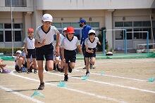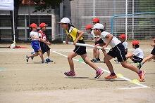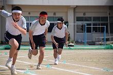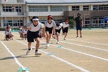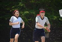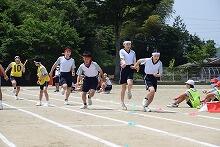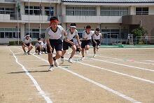 昨日の予行練習のようすです。写真はリレーのようすです。