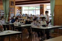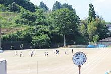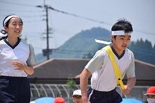 今週末(5月29日(日曜日))、「小中合同運動会」を行います。今日はそのための予行練習でした。青空が広がり、よく晴れた空の下、全校児童生徒(84名)が運動場に出て、全員が揃っての練習でした。気温はやや高めでしたが、さわやかな風も吹いていました。