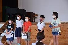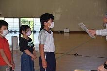 選手推戴式の後、続けて表彰集会を行い、陸上と空手の大会で入賞した児童を表彰しました。