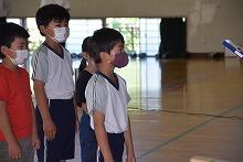 ※ 今日の練習は、屋外で、人と人との距離が確保できているので、マスクは着用しておりません。しかし、マスクの着用を希望している児童生徒には着用させています。