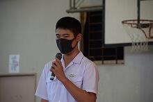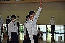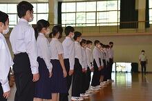 式では各部のキャプテンが抱負を述べ、生徒会長と校長がそれぞれ激励しました。また選手を代表して、軟式野球部の生徒が選手宣誓を行いました。