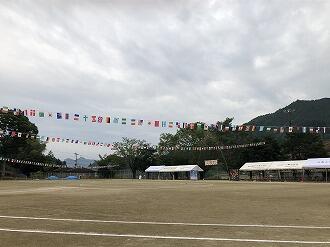 また、役員の皆様のご協力により、会場には万国旗が張られ、入退場門も完成し、明日の開催を待つばかりとなりました。ありがとうございました。