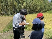 小学5年生が1学期に植えた稲が収穫の時期を迎えました。10月に入ってから行う予定でしたが、先日の台風で稲が倒れたため、今日、稲刈りをしました。