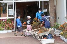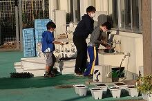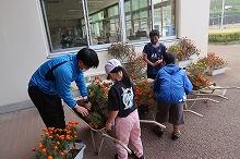 初冬を迎え、全校児童・生徒で花の植替をしました。今回は、小学生が「一人一鉢運動」として自分でパンジーかビオラの苗を選び、植木鉢に植え、その後は教室の近くで管理して育てます。小学1・2年生は中学2・3年生に手伝ってもらいました。