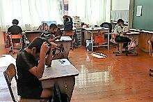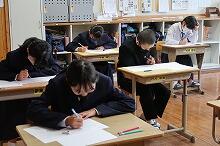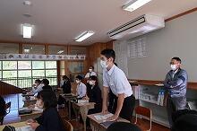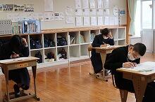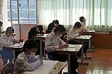 教室では子どもたちが勉強を頑張っていて、中学1年生は県英テストを受けていました。