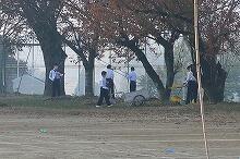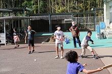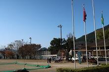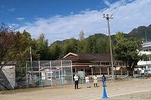 今日も上野は朝からよく晴れています。小学校では、地域の方にお越しいただいて「ふれあい教室」を行います。運動場では、早めに来てグランドゴルフの準備をしてくださっていました。