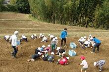 11月2日(水)、小学1•2•3年生は芋掘りをしました。これまでに自分たちで苗(蔓)を植え、草取りもしてきました。